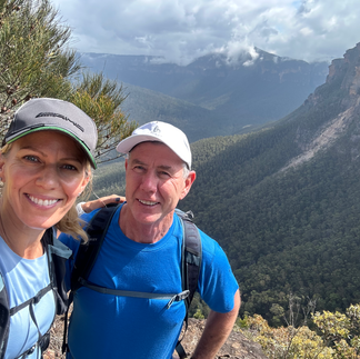 Below in picture: Rex and Annie, visiting Australia, hiking in the Blue Mountains, swimming in the ocean, and visiting New Zealand together. Their daughter Alex and husband Keith, visiting and exploring Oz.